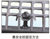 注:選擇哪種鋼格板安裝方法,由客戶根據(jù)現(xiàn)場實際情況選擇決定,安裝夾可根據(jù)客戶要求由我廠提供。用戶在鋼格板安裝固定完畢后,使用者要注意保養(yǎng)和維護,如發(fā)現(xiàn)安裝夾松動,應(yīng)及時緊固。